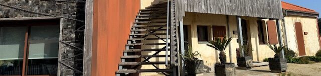 A l’arrière, une porte vitrée donne accès à une petite terrasse privative avec sa table forestière